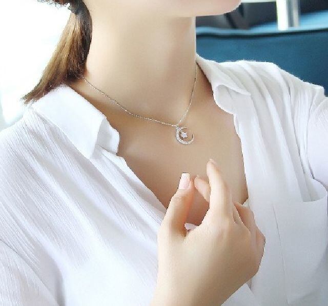 ☆ 胸元で小さな星と月がゆらりと揺れる、かわいいシルバーペンダント。