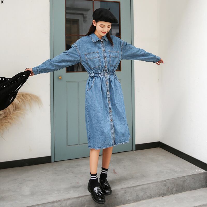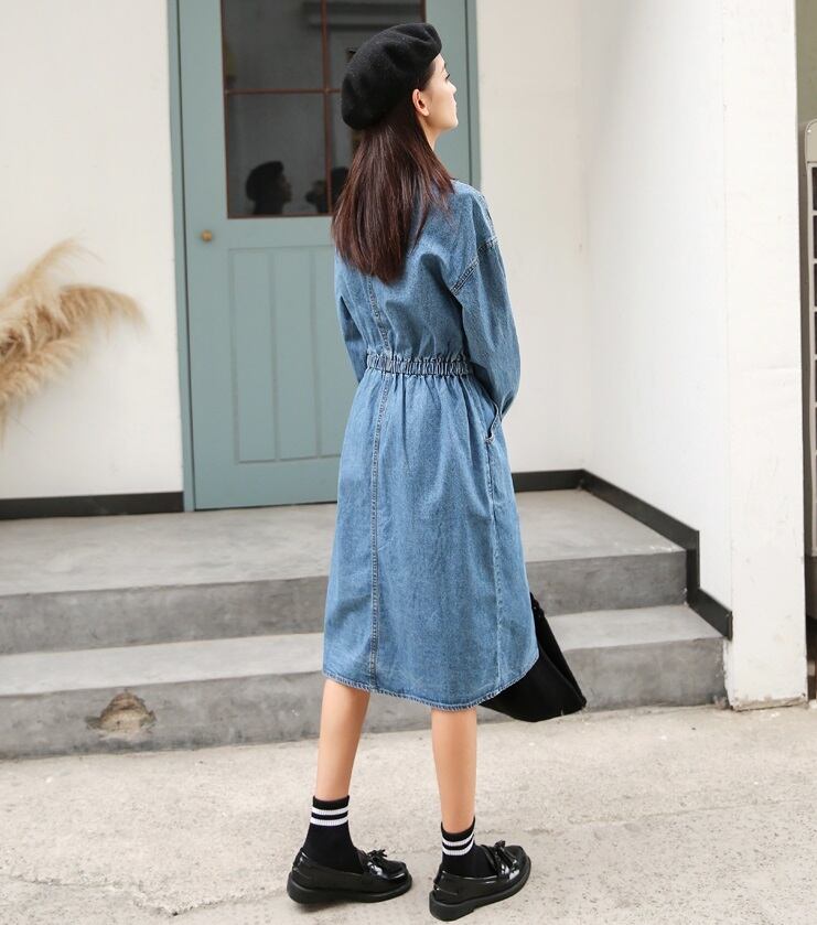 おすすめ 春物トレンド 人気 売れ筋 ワンピース シャツ ワンピ デニム 長袖 ウエストマーク Aライン ひざ下丈 ビンテージ カジュアル ガーリー KN-0018 | dress_sugar_moon