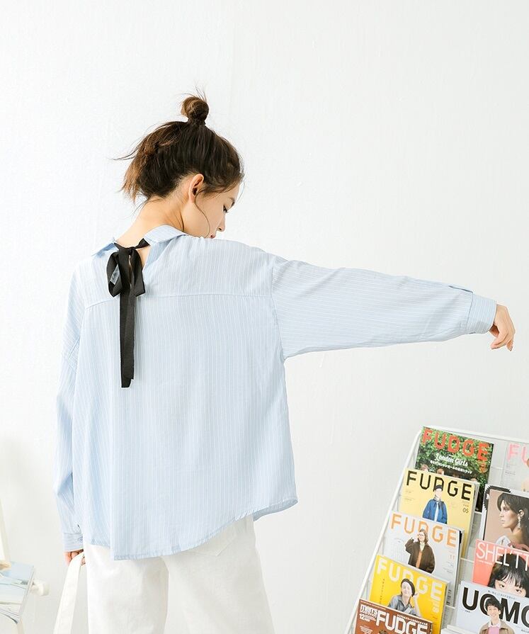 バックの抜き襟部分のリボンが
