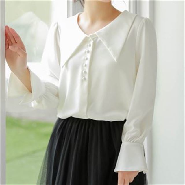 大きめの襟と広がった袖口が