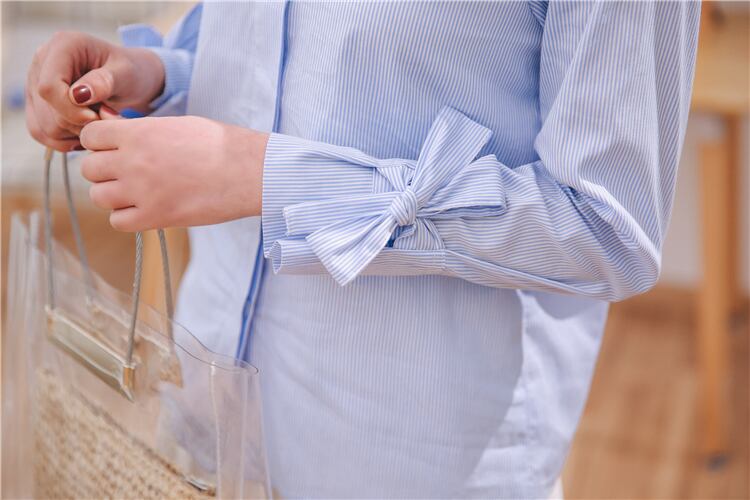背中と袖口のリボンがフェミニンな長袖ブラウスのご紹介です。