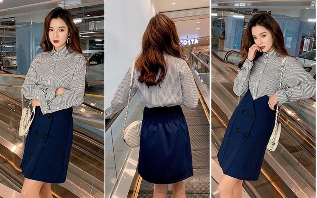 春物 売れ筋 おすすめ セットアップ セット シャツ 長袖 ストライプ ロゴ タイトスカート ミニ丈 無地 トレンチ ハイウエスト きれいめ お出かけ KN-0224 | dress_sugar_moon
