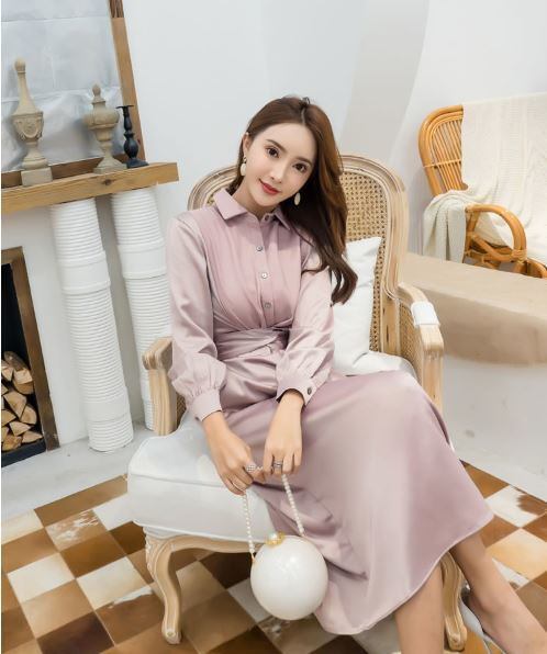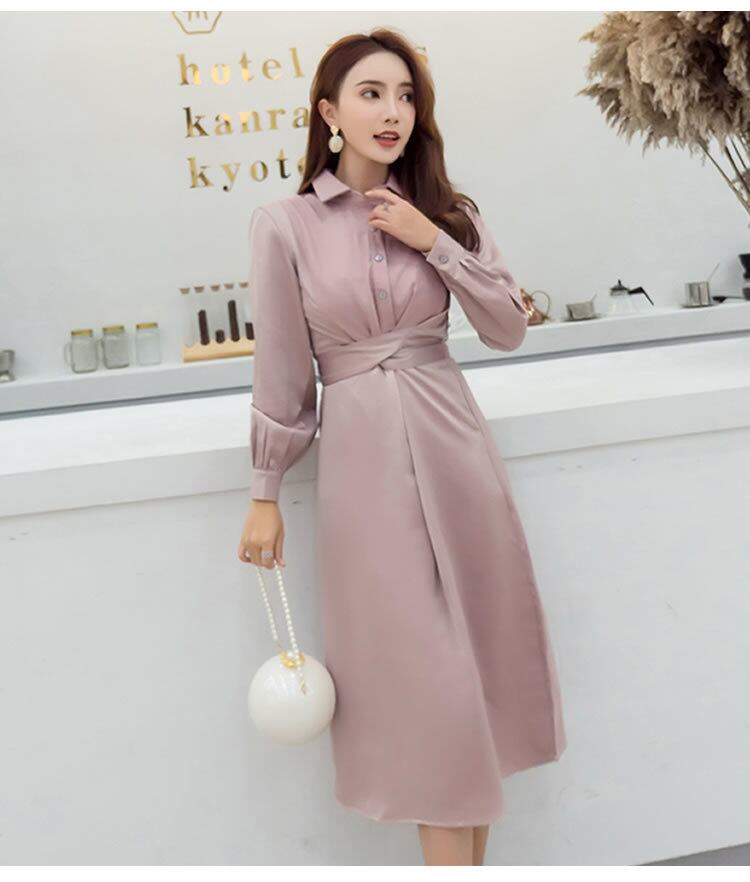 春物 レディース ワンピース シャツワンピース ミモレ丈 シンプル ウエストマーク ウエストリボン 長袖 上品 フェミニン エレガント パーティ ドレス KN-0270 | dress_sugar_moon