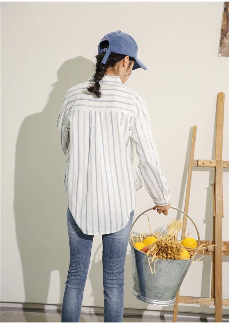 羽織りとしても便利なストライプ柄シャツです。