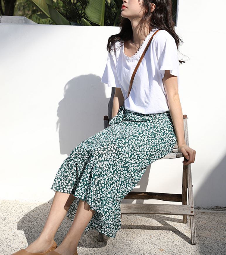 ホワイトの小花柄がガーリなスカート♪