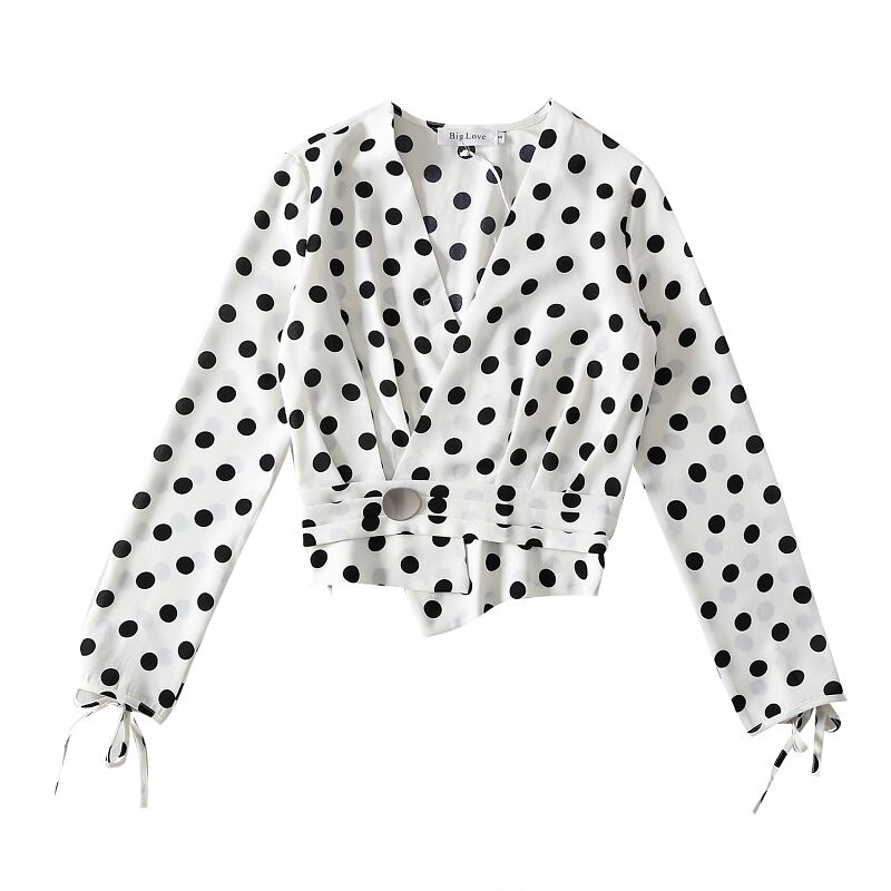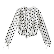 モノトーンのドット柄と袖口のリボンが