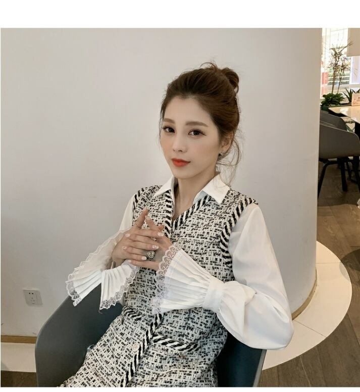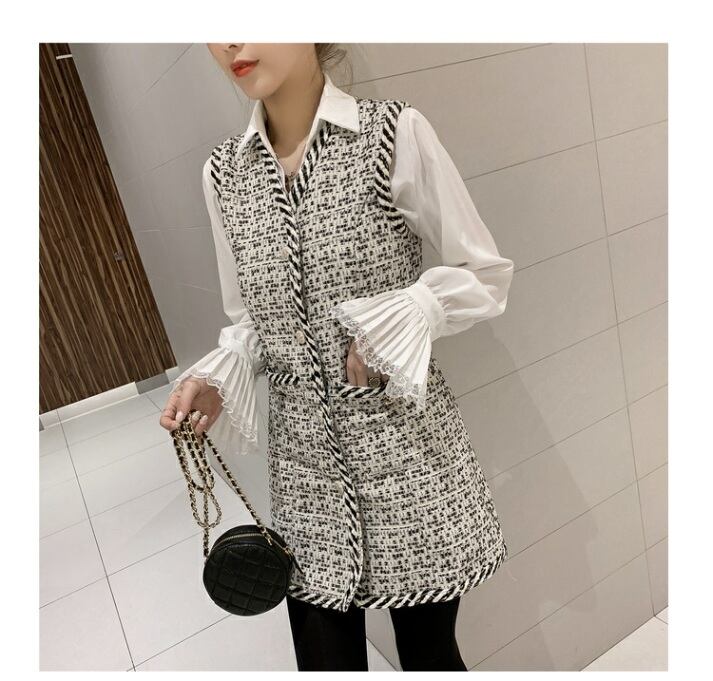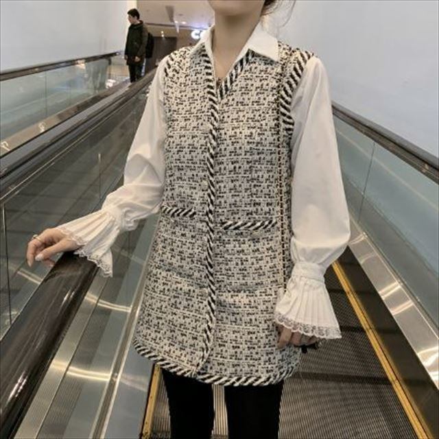 ツイードワンピース+ベルスリーブシャツの上品なセットアップのご紹介です。