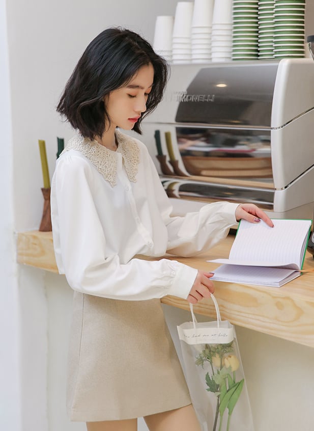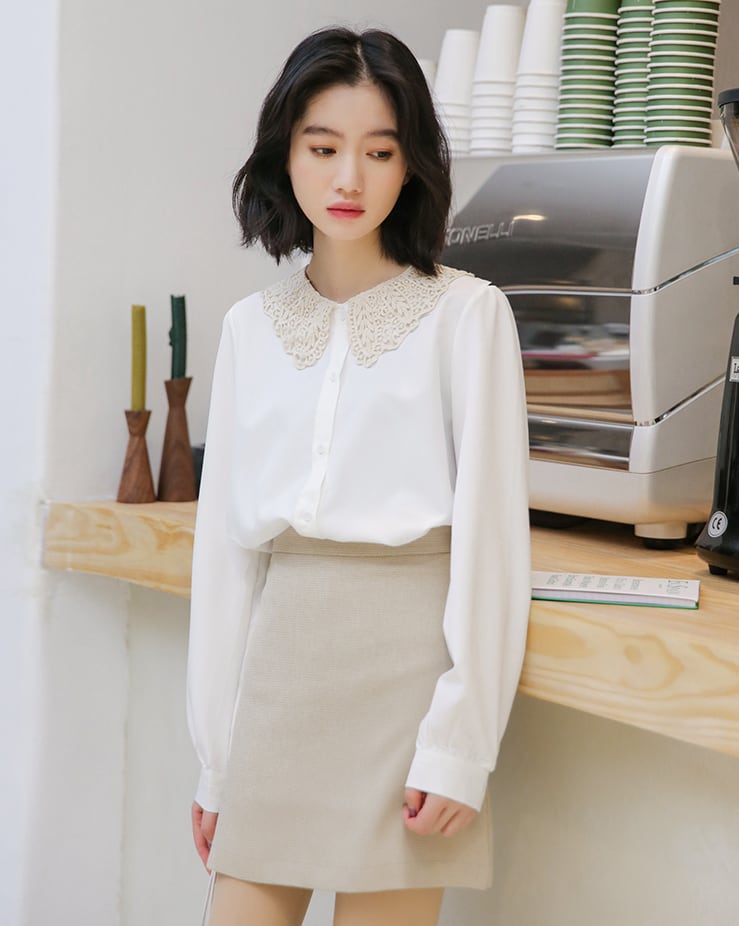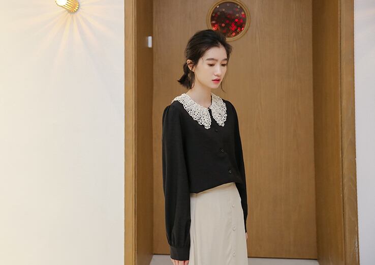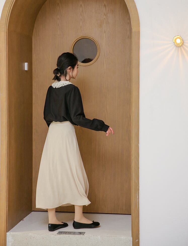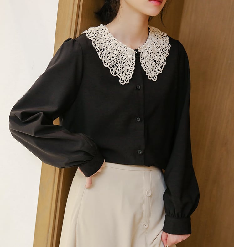 清楚で華やかな雰囲気の長袖ブラウスです。