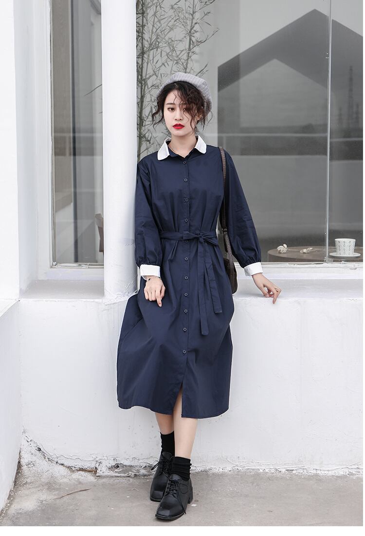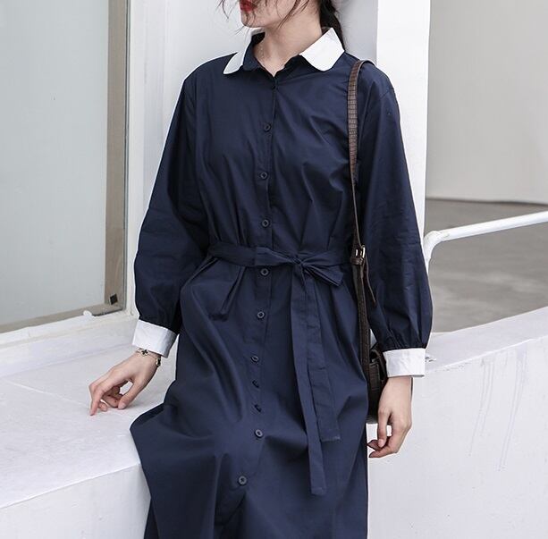 ハリのある素材で上品な印象を与えるシャツワンピースです☆