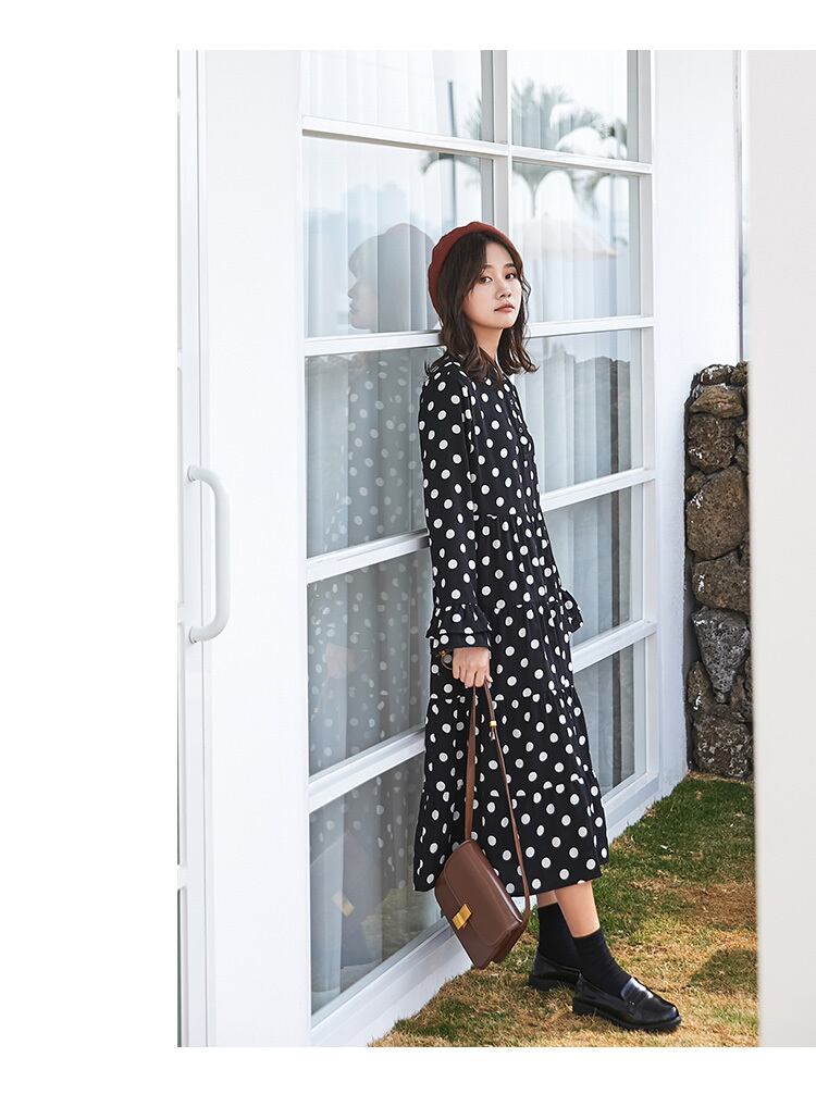 モノトーンのドット柄で甘くなりすぎず、カジュアルなスニーカーやジャケットと合わせたコーデもオススメです☆