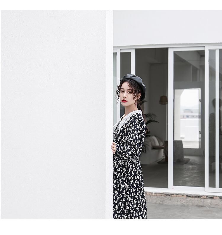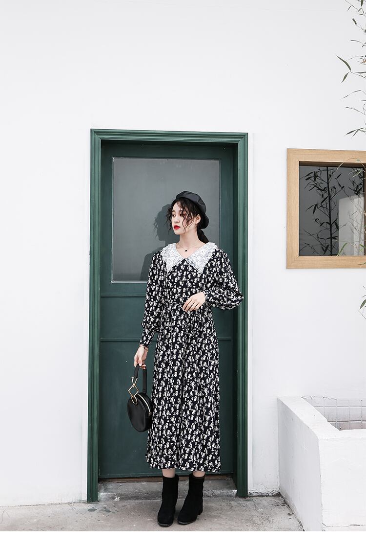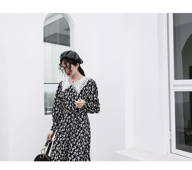 レース素材の襟がとってもガーリな花柄ワンピース☆