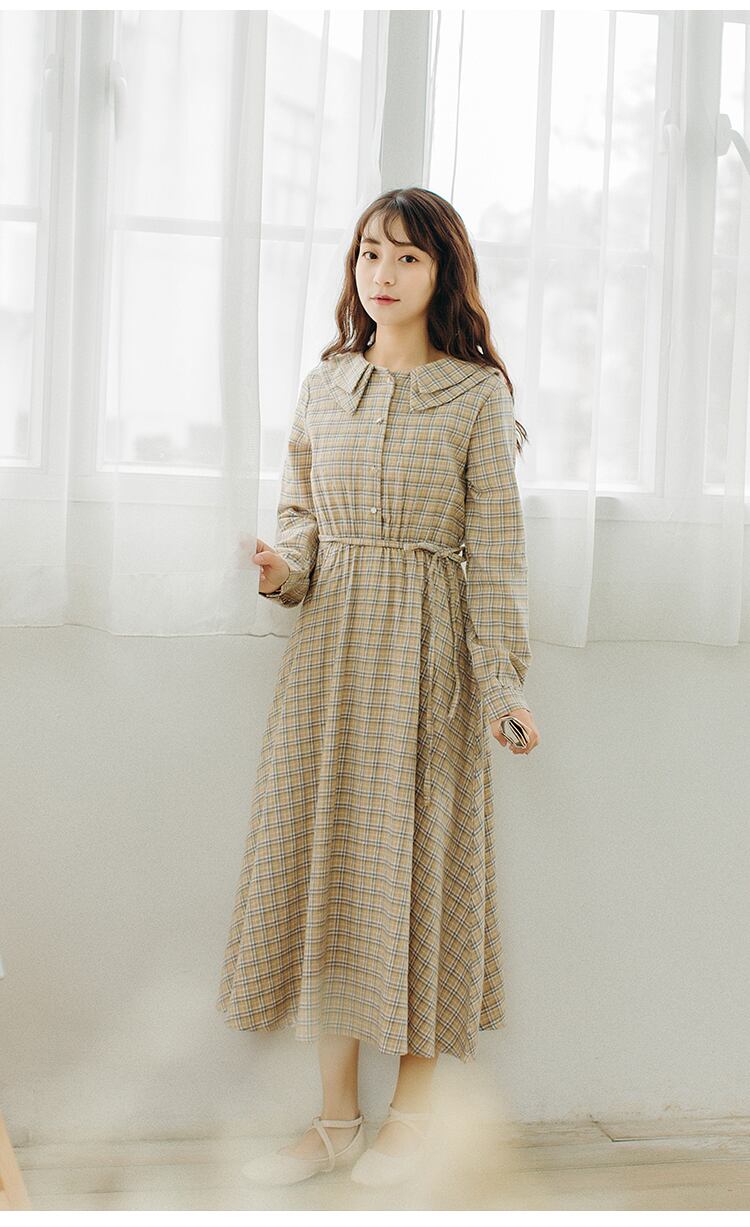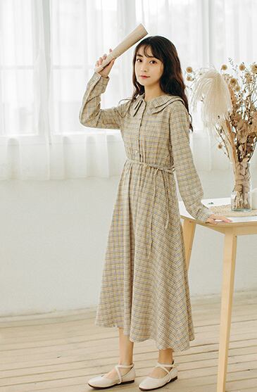 ロング丈長袖ワンピースです。