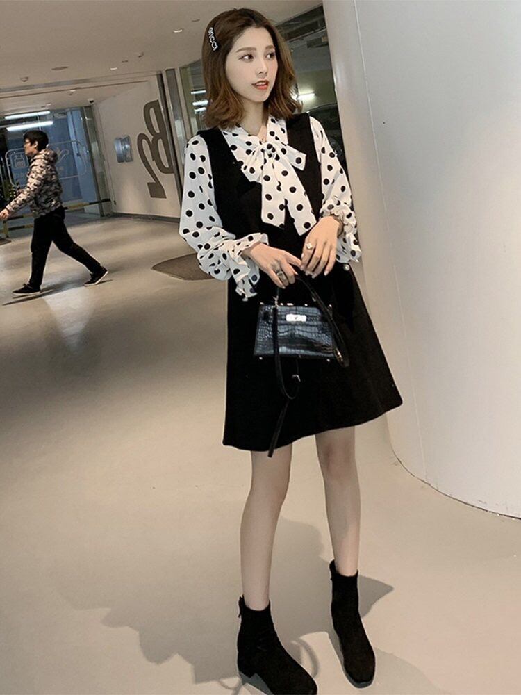 水玉で首元のリボンがアクセント‼