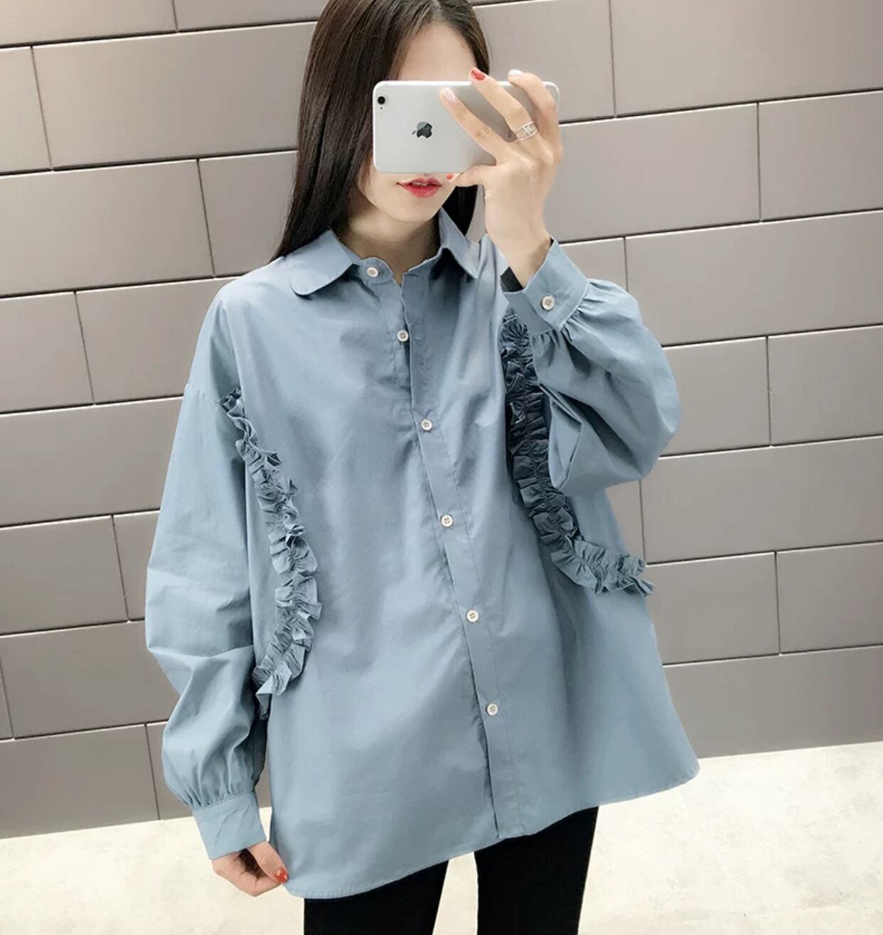 脇部分のフリルが上品なビッグシルエットシャツ✩