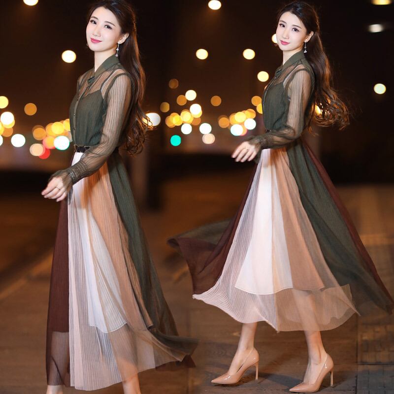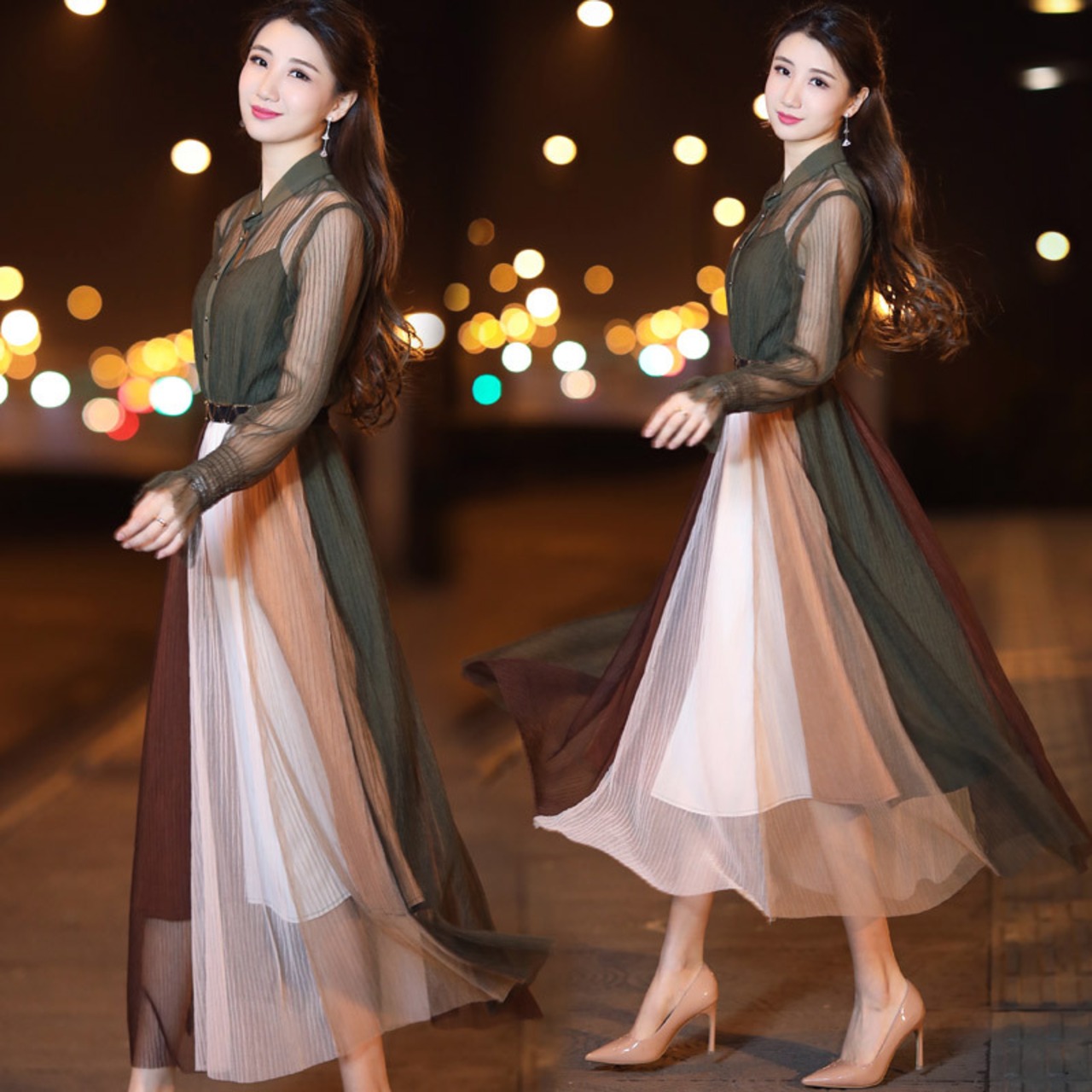 華やかでエレガントな雰囲気のロング丈シフォンドレスです。