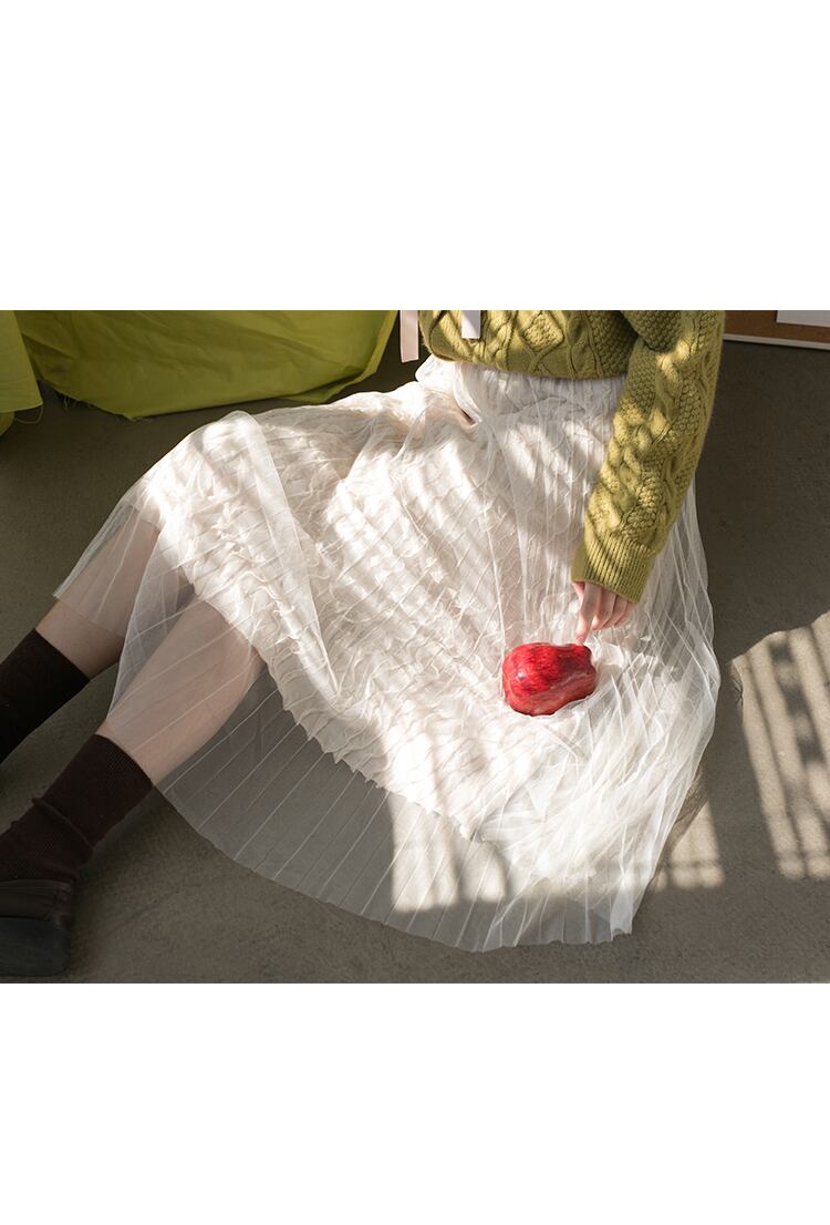 春物 おすすめ 今季トレンド チュール スカート プリーツ フリル ウエストゴム フレア ミモレ丈 ロング ガーリー ゆったり 可愛い 体型カバー 女子会 KN-0418 | dress_sugar_moon