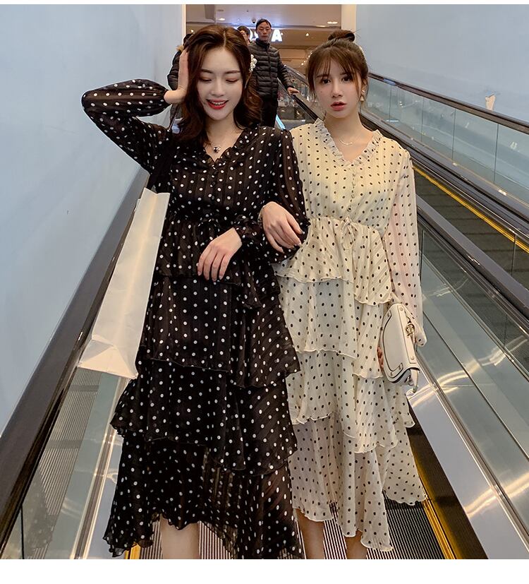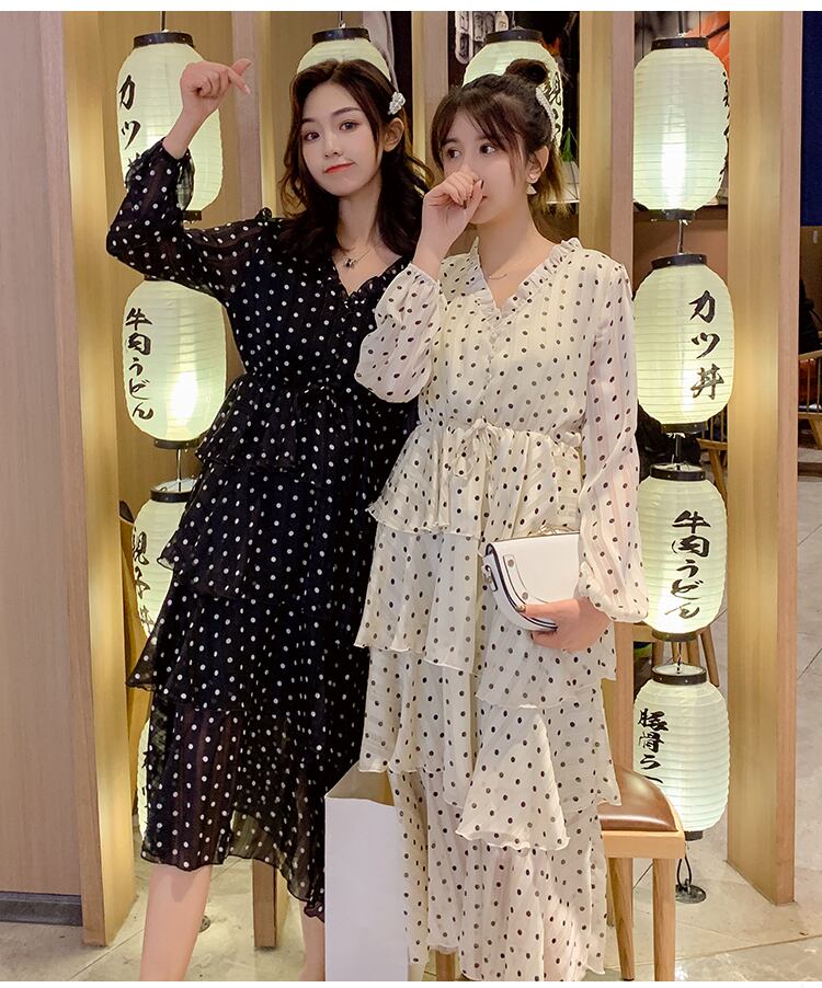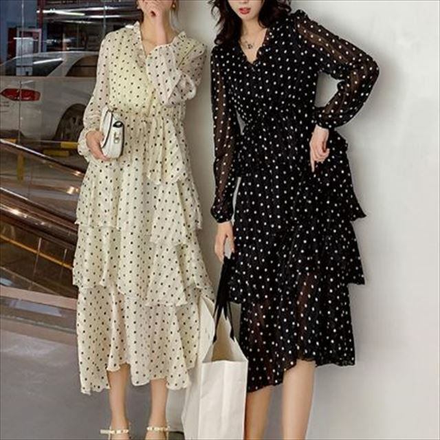 ハイウェストからふわりと広がるティアードスカートがフェミニンな長袖ワンピースのご紹介です。