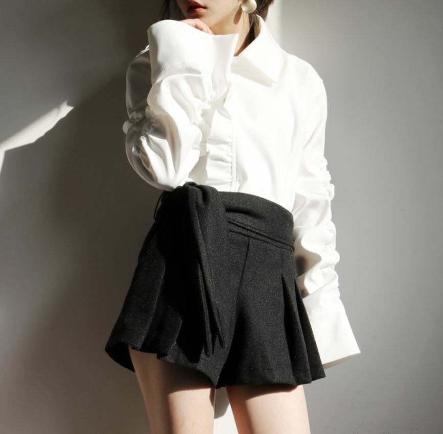 ボリュームたっぷりのフリルがとってもフェミニンなシャツ♪