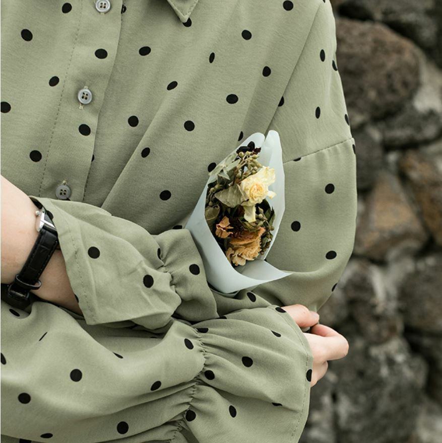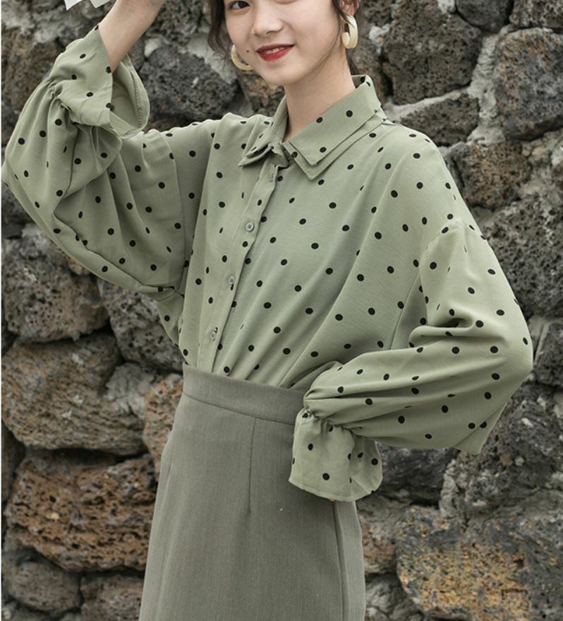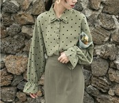 トレンドのくすみカラーがお洒落なドット柄シャツ☆