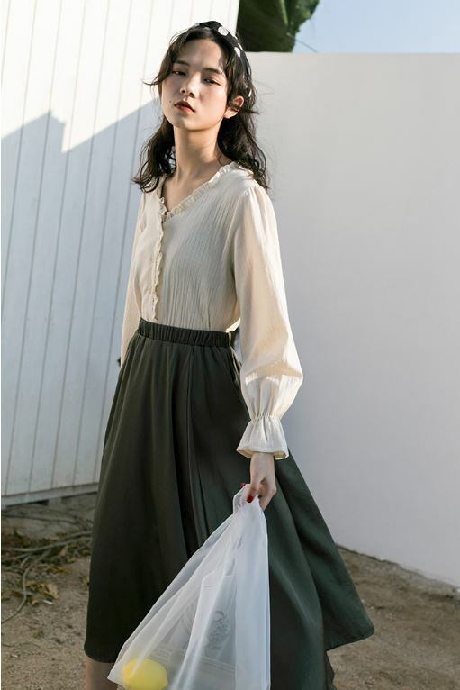 ふんわりとしたAラインのシルエットが可愛らしいモノトーンスカート♪