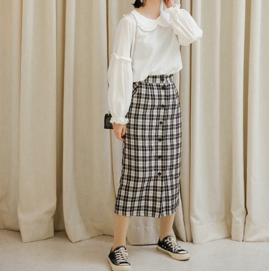 スッキリとしたスリムなシルエットが大人可愛いチェック柄スカート♪