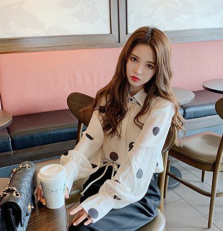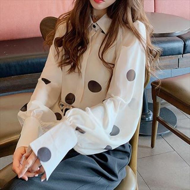 トレンドのドット柄がかわいいシフォンブラウスです。