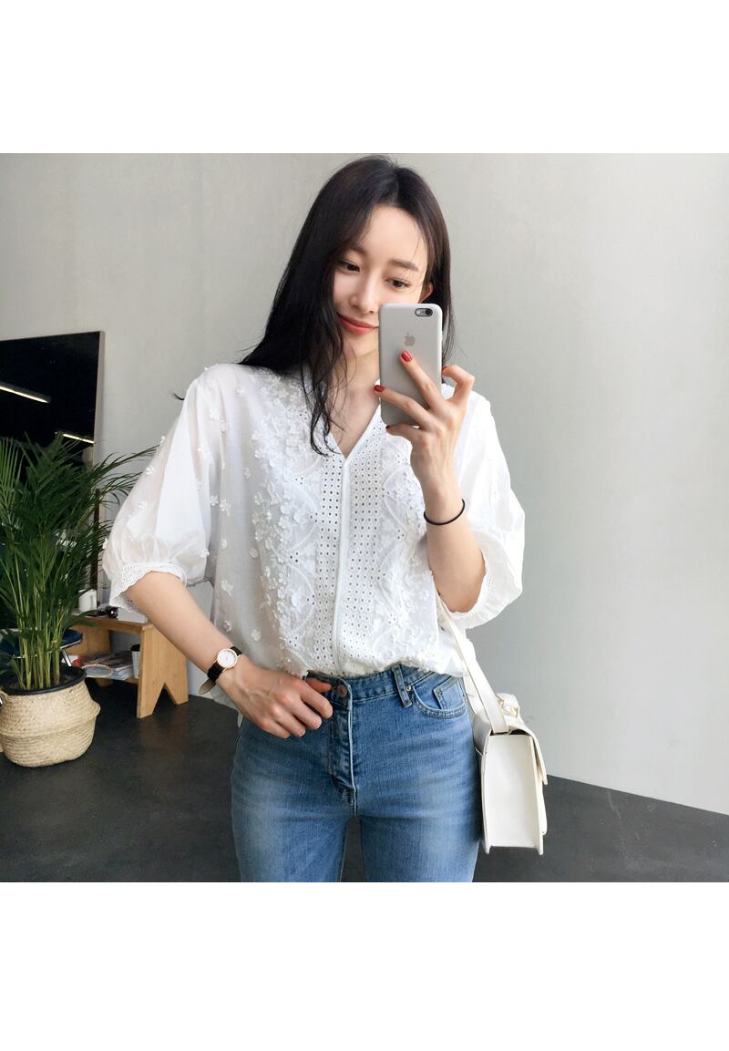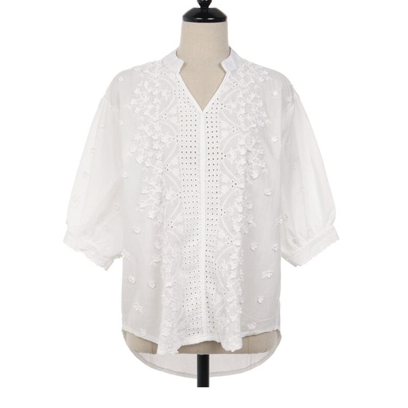 全体的に花柄刺繍がほどこされており