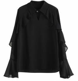 肩から袖にかけてフリルがあしらわれたフェミニンなシフォンブラウスです。