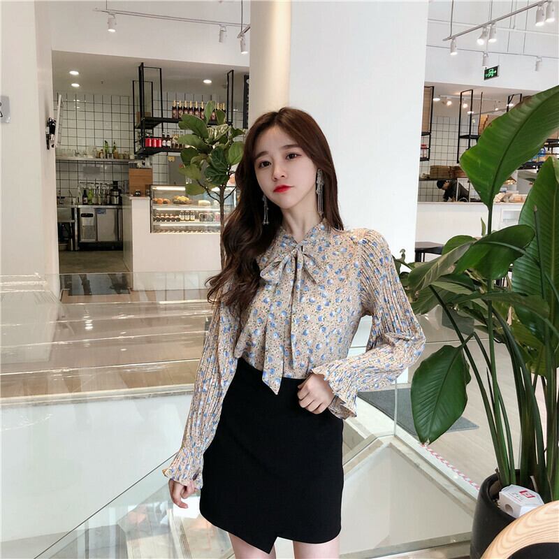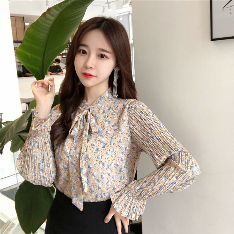 花柄&ボウタイがフェミニンなシフォンブラウスです。
