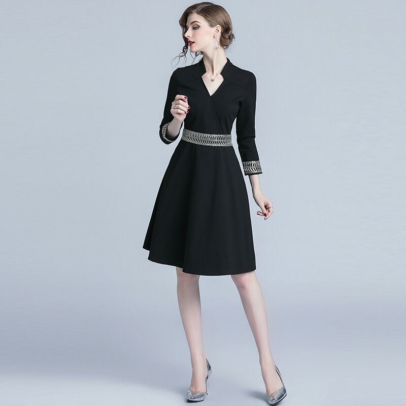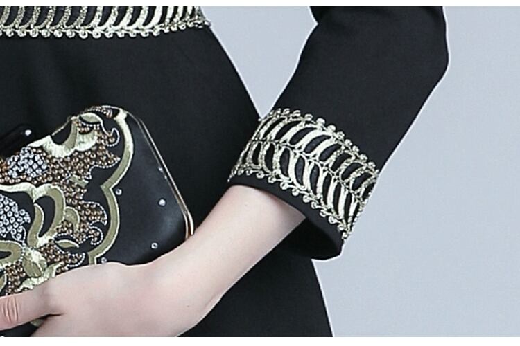 シンプルなブラックカラーのワンピースに映える刺繍が華やかさを高める1枚。