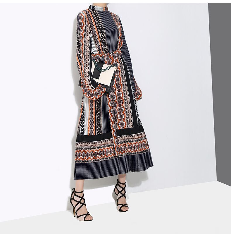 印象的な総柄プリントがインパクトを与え、レトロな雰囲気醸し出すワンピースです。
