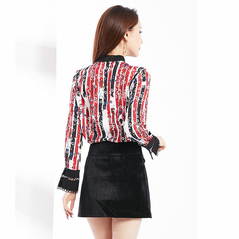 ブラック×レッドの変形ストライプ柄にフラワープリントをあしらって女性らしさもプラス。
