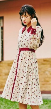 ヘムラインやウエストをレッドに縁取ることで、甘くなり過ぎず凛とした大人っぽい印象に☆