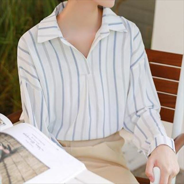デコルテラインを美しく魅せてくれるスキッパーデザインにゆったりとしたサイズ感でこなれ感をプラス☆