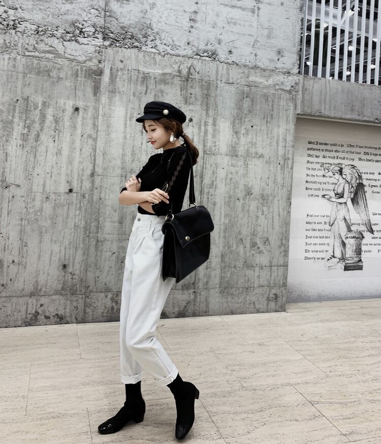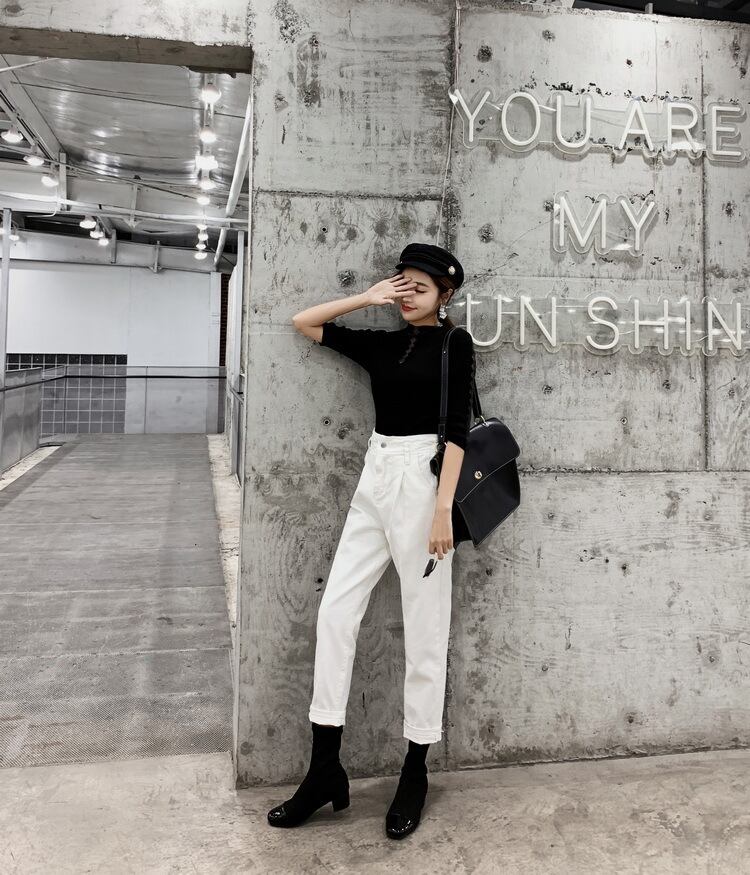 ハイウェスト&クロップド丈の脚長効果抜群なデザインで、きれいめカジュアルにぴったりなアイテムです☆