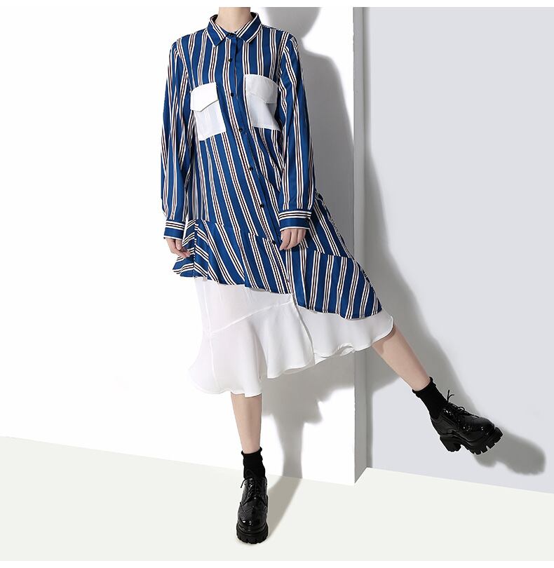 アシメントリ―なデザインがシャープでお洒落なシャツワンピース☆