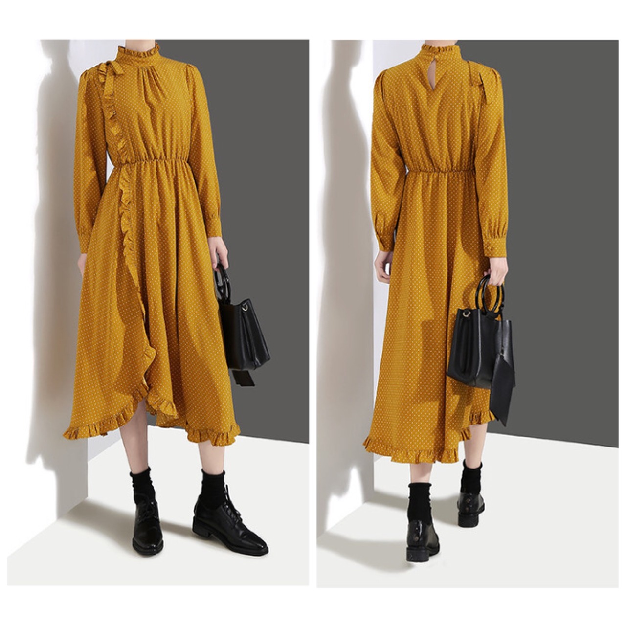 縦に流れるようなフリル使いがとっても女の子らしいドット柄ワンピース☆