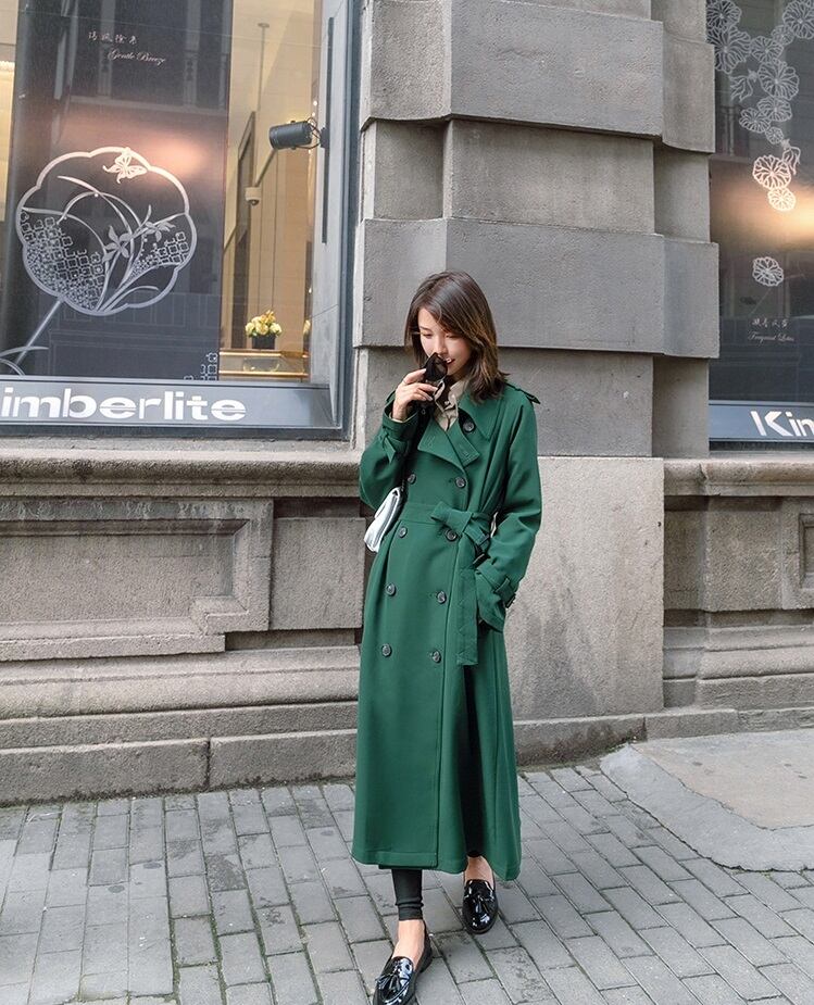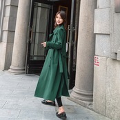 深みグリーンカラーで、いつものコーデに彩りを与えてくれるトレンチコートです◎