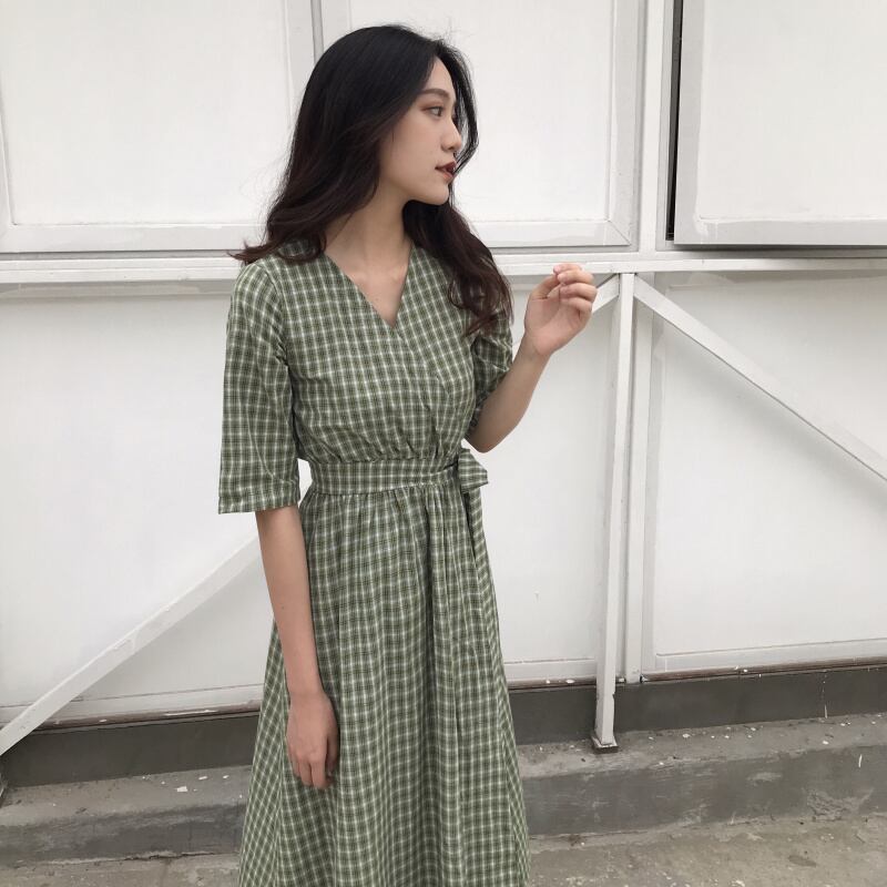 カシュクールデザインで顔周りをすっきりと大人っぽく見せてくれる、ガーリーなワンピ☆