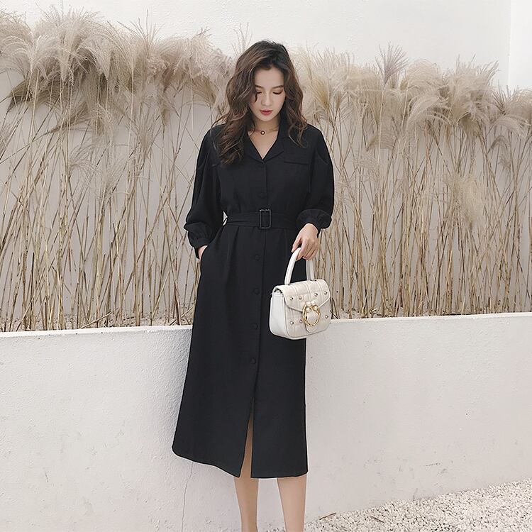 開襟タイプで大人シックな雰囲気を演出するシャツワンピースです☆