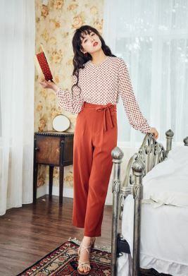 レトロ感のある色合いにウエストリボンがフェミニンなアイテム☆