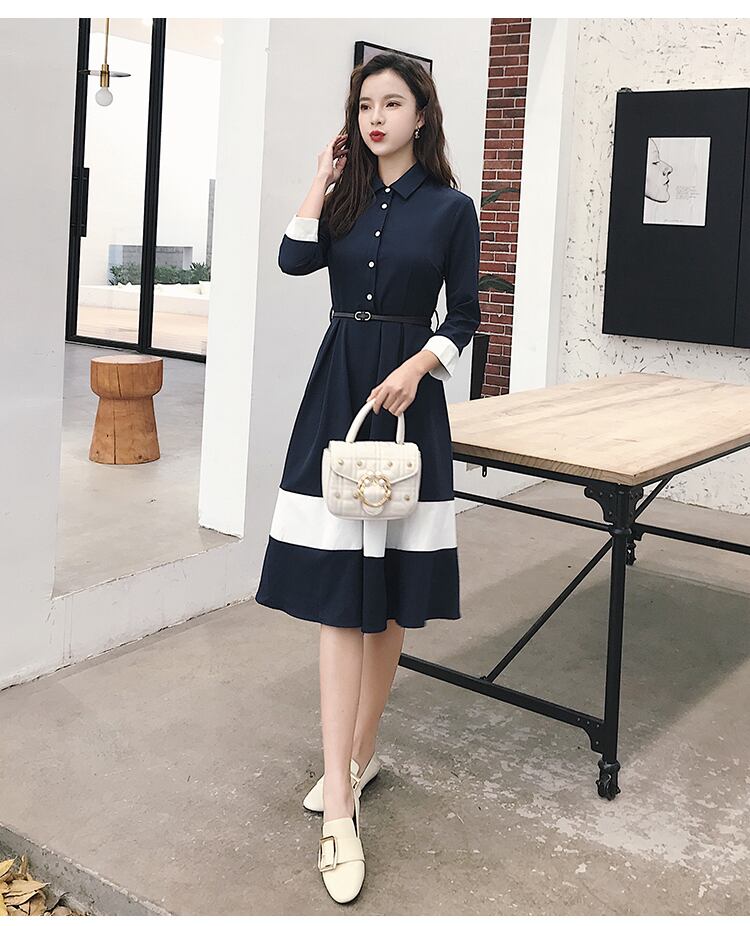 シャツデザインからふわりと広がるフレアスカートがフェミニンなワンピースです。