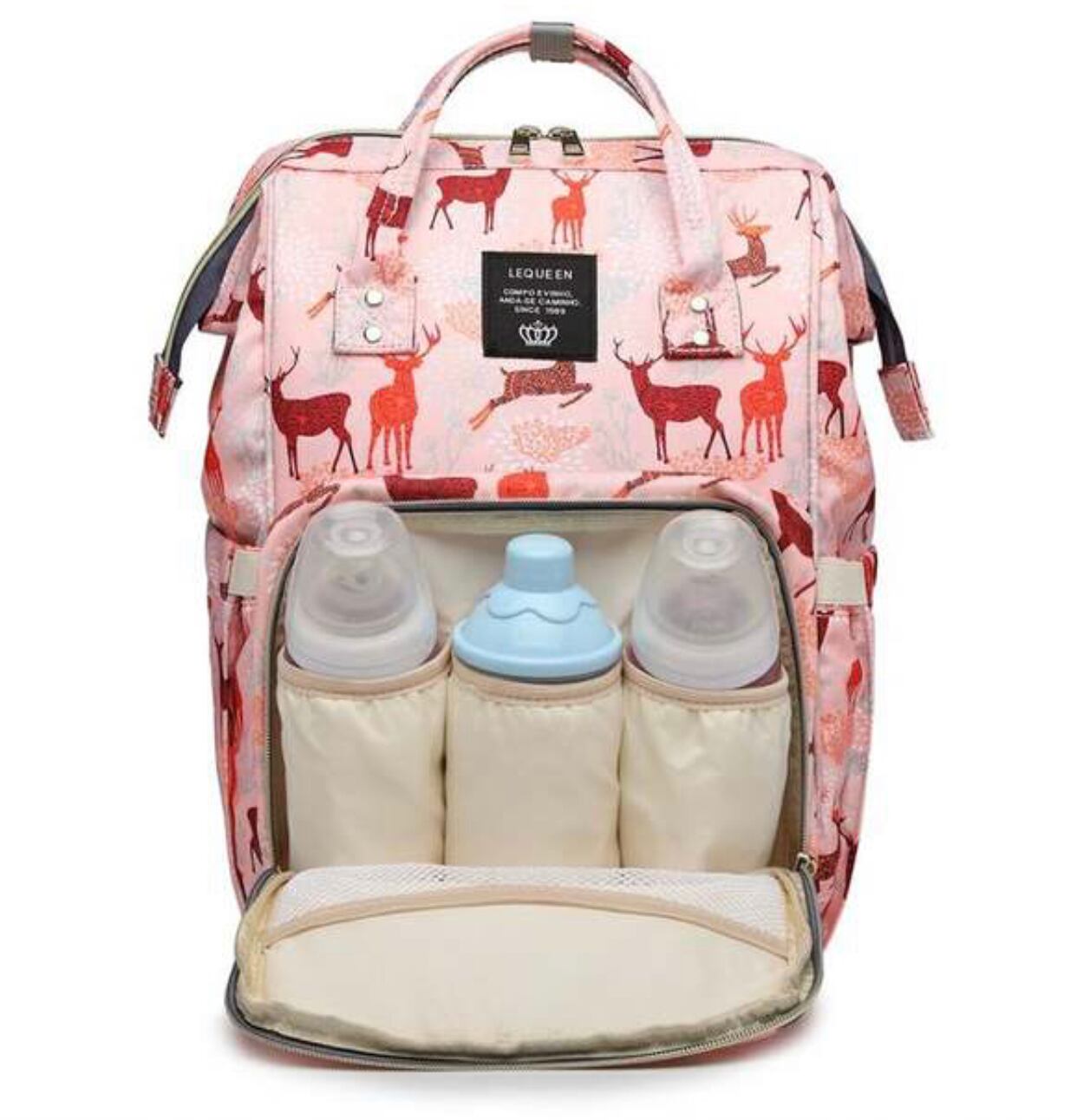正面のチャックを開けるとアルミポケットで飲み物の温度、ミルク、哺乳瓶などを持ち運べます‼