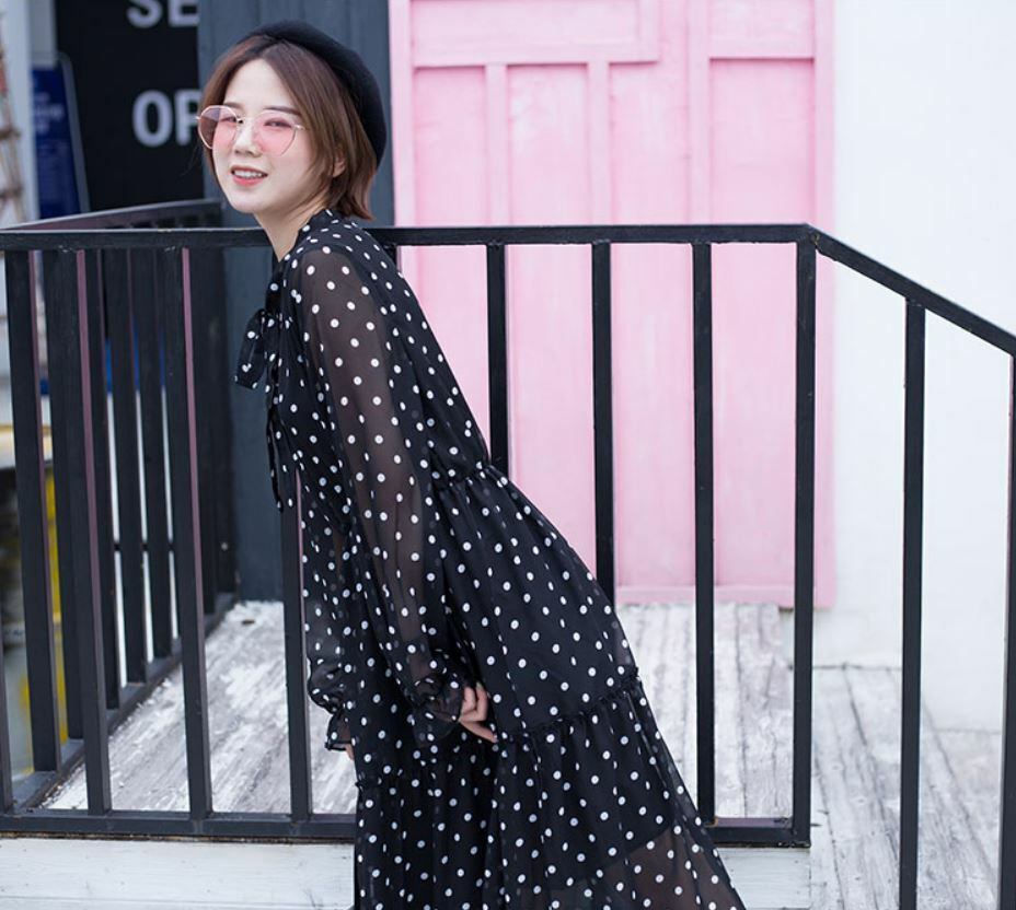 大き目のドット柄がレトロで可愛いシフォンワンピース☆
