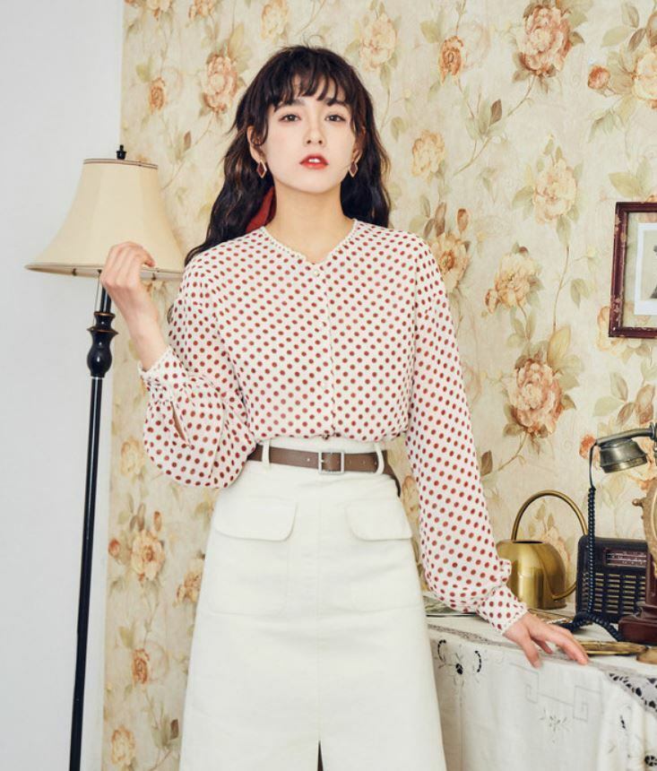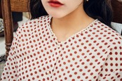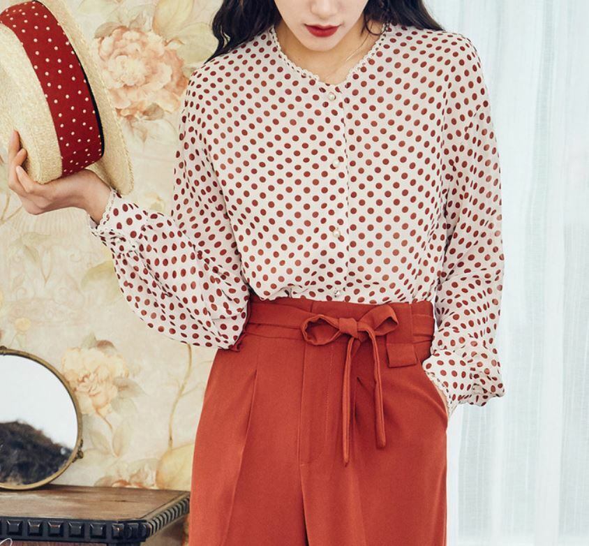 赤いドット柄がパッと目を引くガーリーなブラウス☆