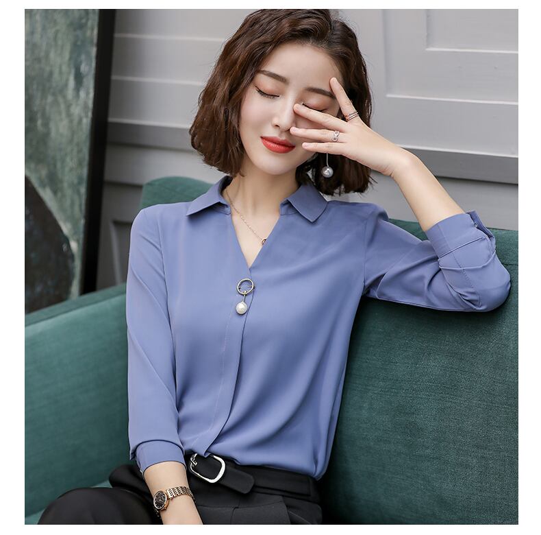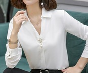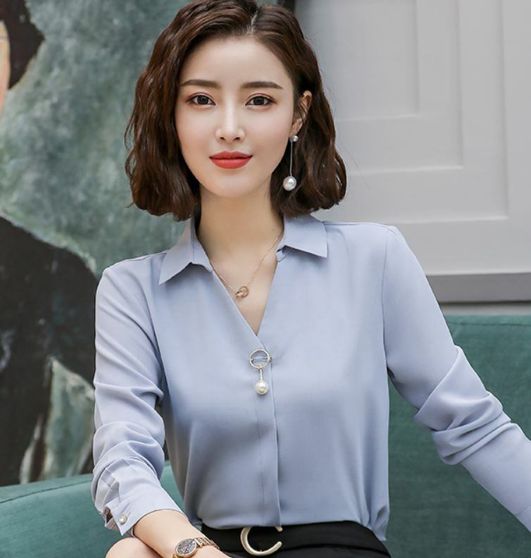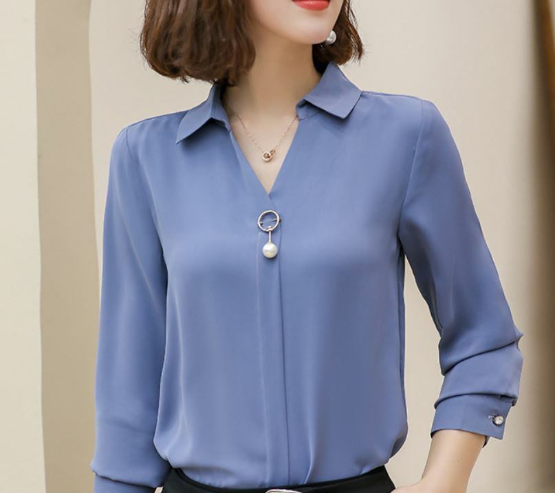 Vネックと、胸元のチャームで小顔効果もある一枚です。