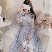 サイズ:【F】着丈115㎝ バスト96㎝ ウエスト64-76㎝ 肩幅42㎝ 袖丈59㎝