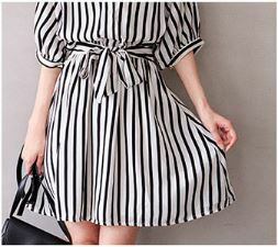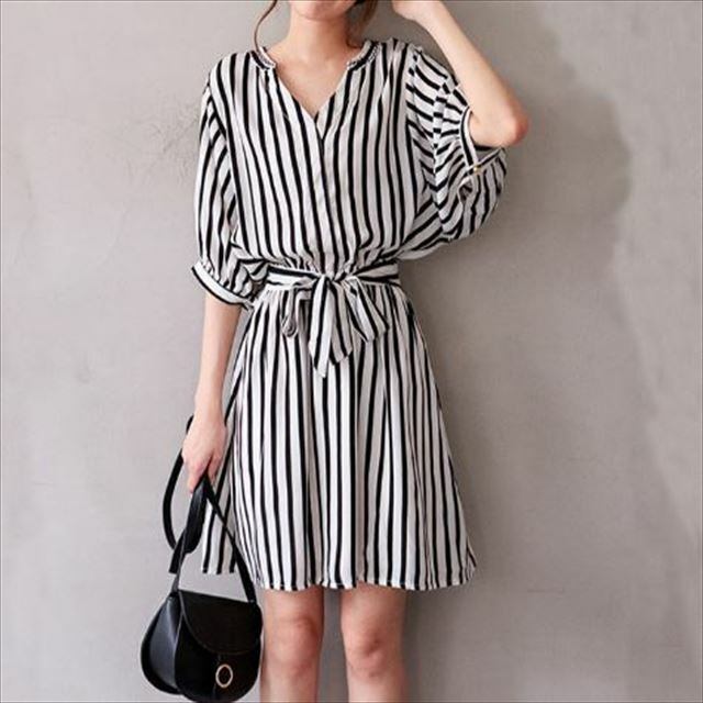 爽やかなストライプ柄がトレンドライクなミニ丈ワンピースのご紹介です。