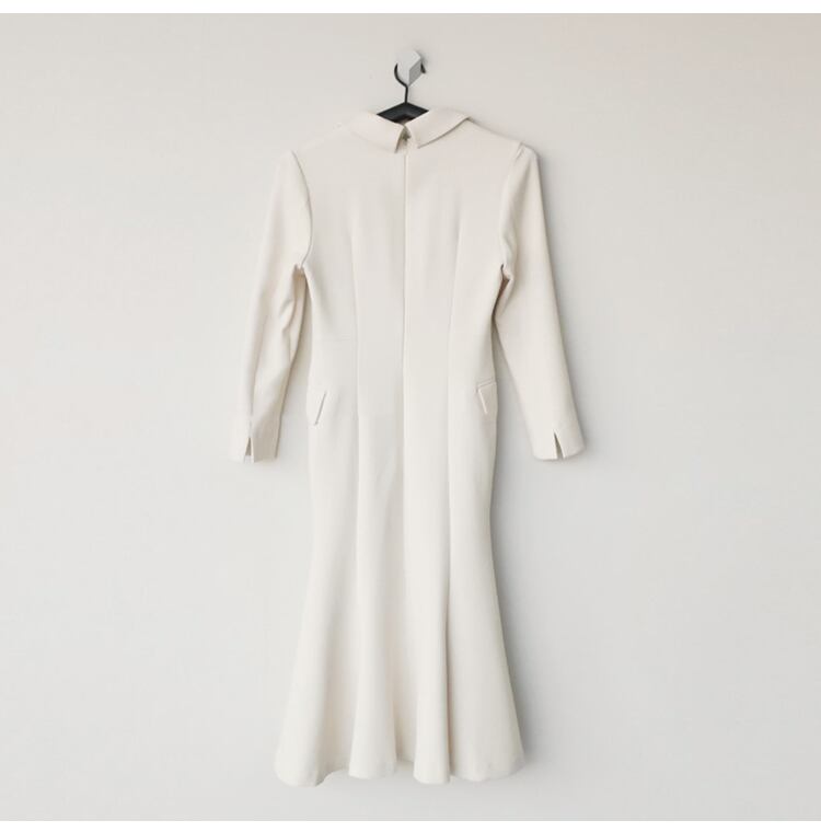 タイトなシルエットからひらりとゆらめくスカートがエレガントなワンピースです。