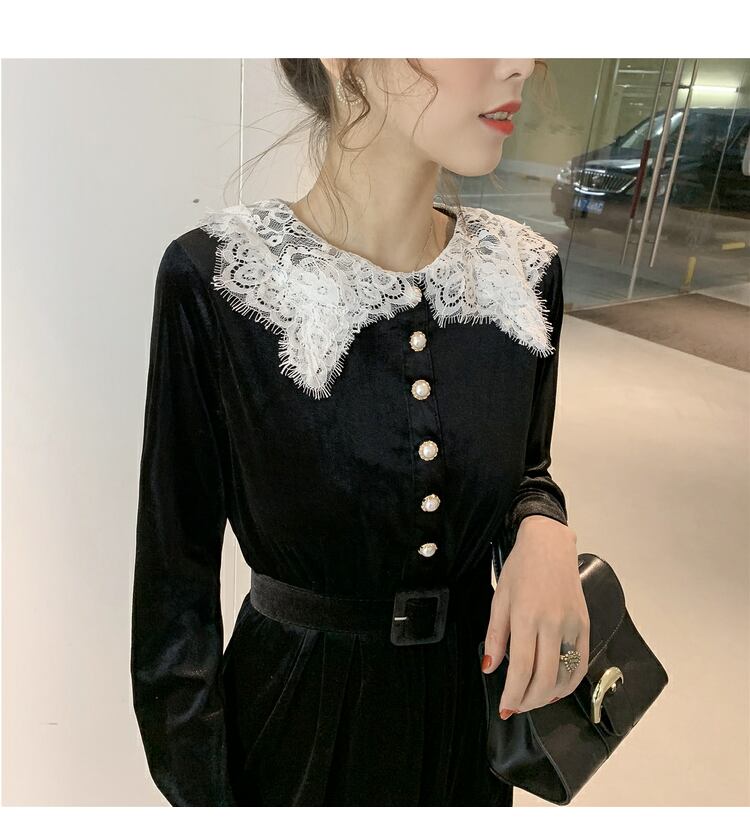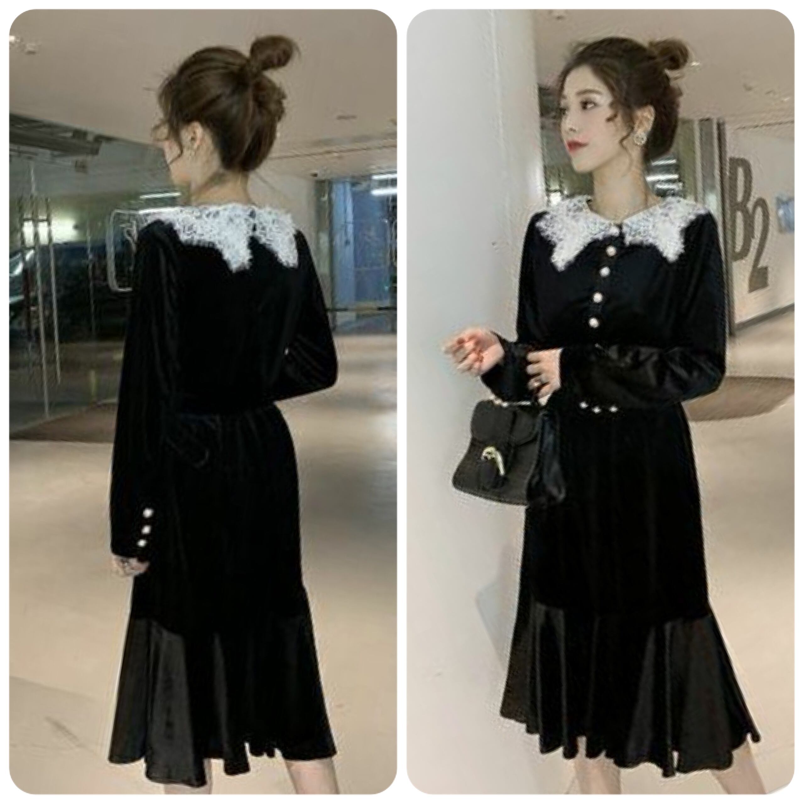 光沢のあるベルベット生地が高見えする膝丈ワンピースです。